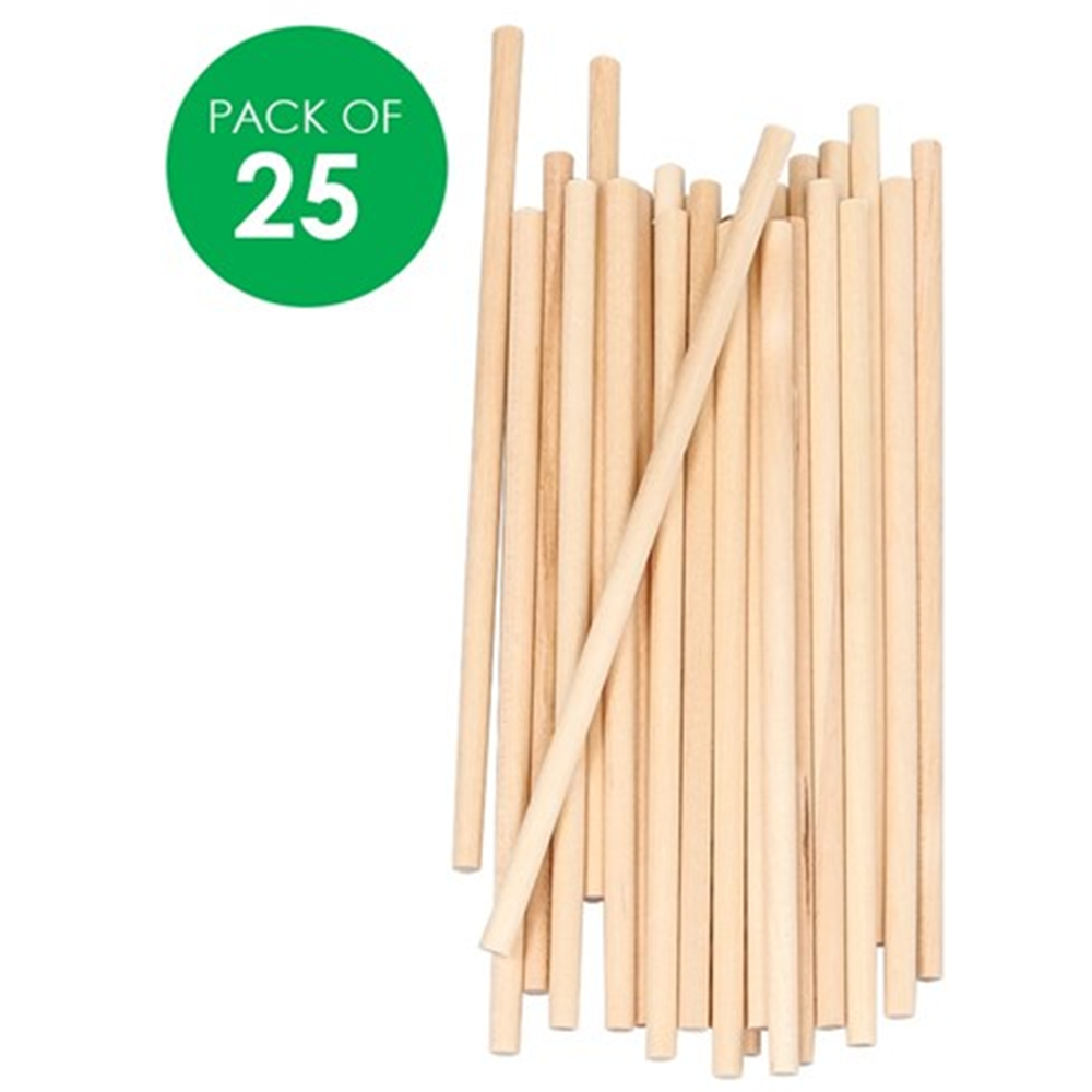 CleverPatch Wooden Dowel Natural Pack of 25 Approx 15cm x 0.5cm