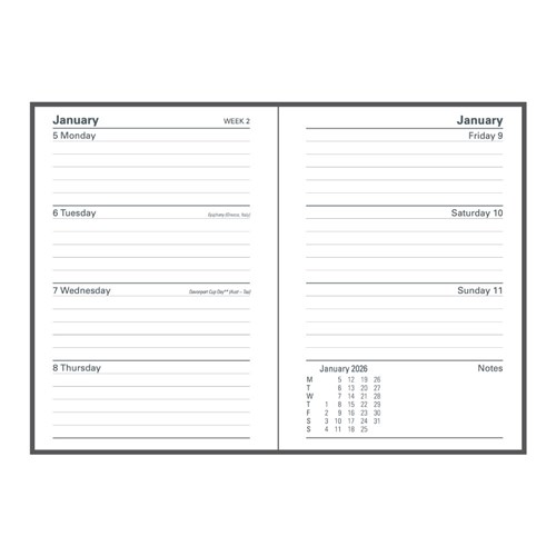Smartly bound in durable covers with a ribbon marker, these Collins diaries have Australian and International holidays printed throughout and contain 32 pages of useful information.