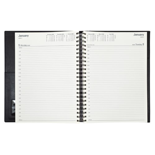 Ideal for those 'on the move' with its double wiro binding and heavily grained metallic and matt PU cover.