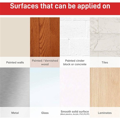 Works on a variety of indoor surfaces, such as painted Gyprock, finished wood, tile, metal and glass