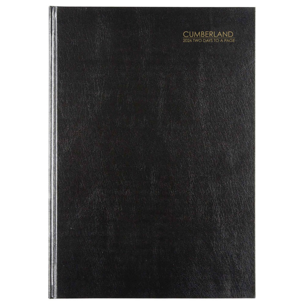 CUMBERLAND CLASSIC DIARY 2 Days To Page Casebound A4 Black