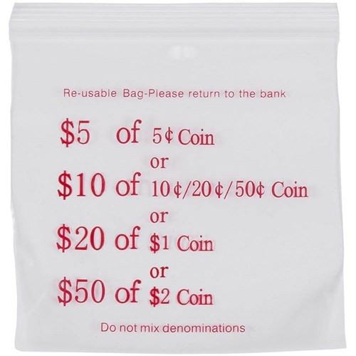 Cumberland Coin Bag Resealable Printed 110x100mm Pack of 100