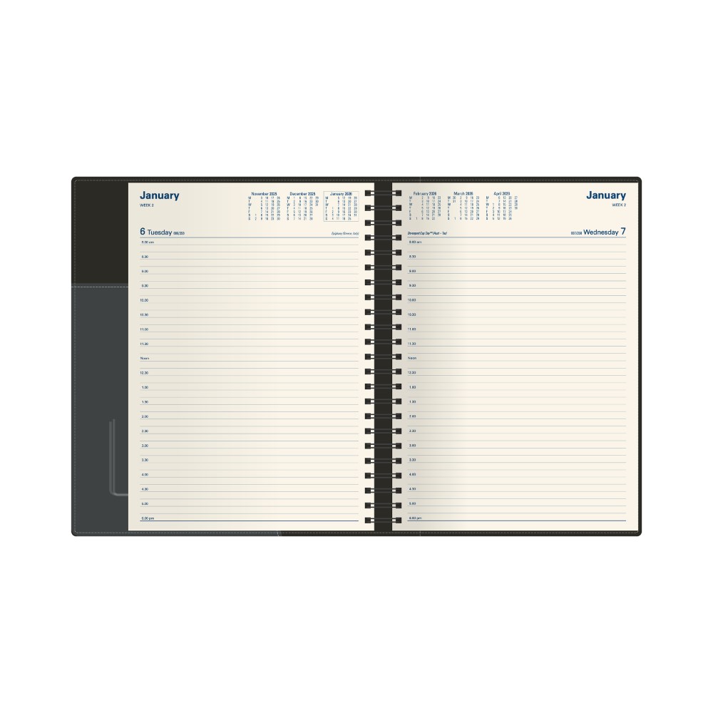 Soft-touch padded cover. Lay flat wiro binding with ribbon marker.