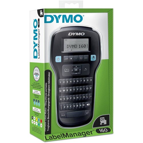 Prints on Dymo D1 label tape in 6, 9 and 12mm widths.
