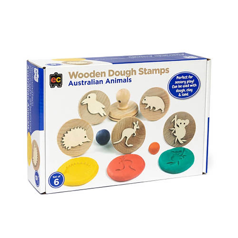 Educational Colours Wooden Dough Stamps Australian Animals Set of 6
