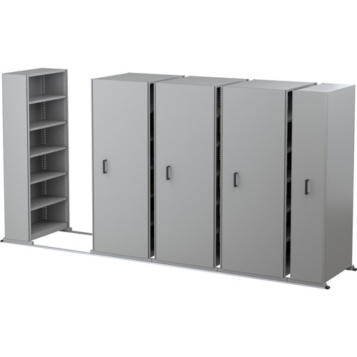• Ezi-Slide Aisle Saver Unit 2500L x 900W x 400D x 2175mmH 5 Shelves 4 Bay Silver