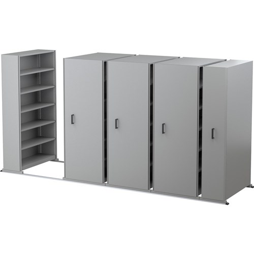• Ezi-Slide Aisle Saver Unit 4500L x 1200W x 400D x 2175mmH 5 Shelves 8 Bay Silver