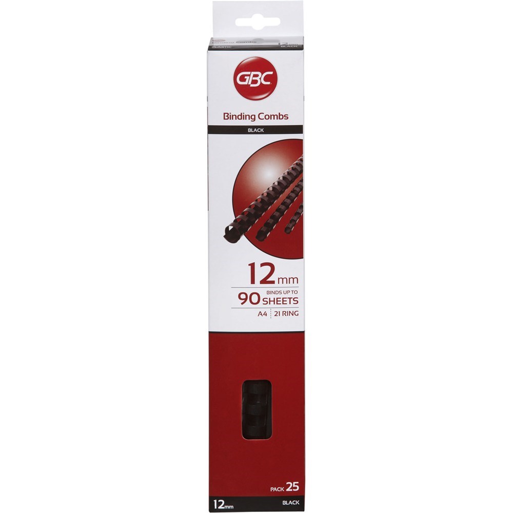 GBC Plastic Binding Comb 12mm 21 Ring 90 Sheets Capacity Black Pack of 25