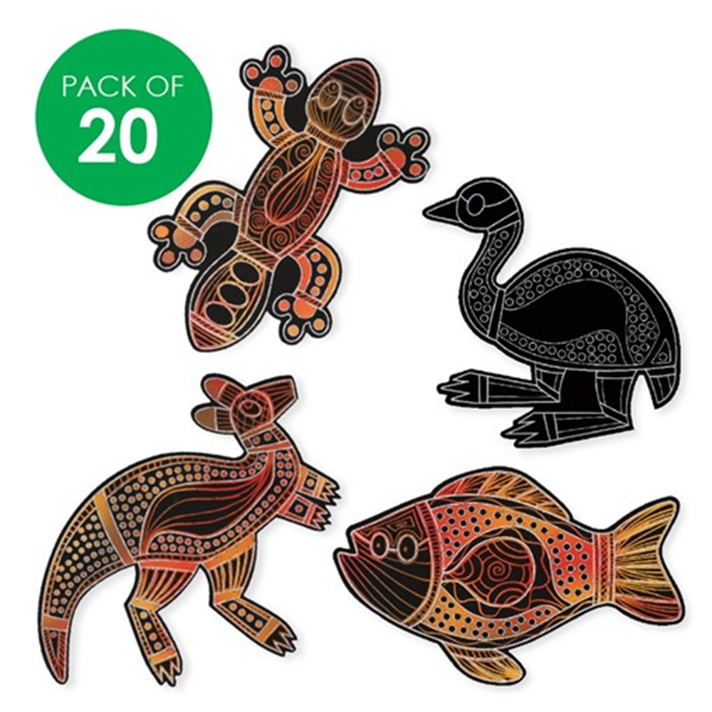 Indigenous Designed Printed Scratch Board Shapes Pack of 20