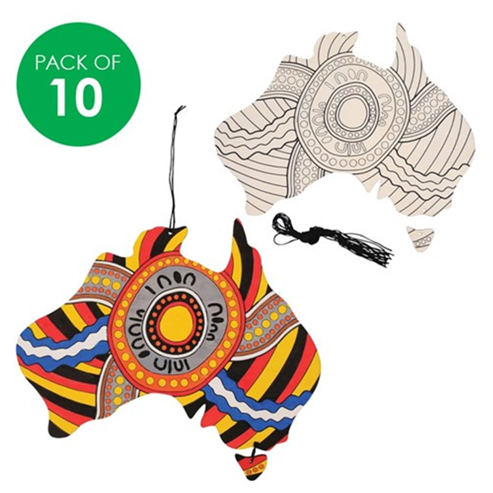 Indigenous Designed Printed Wooden Australia Shapes Pack of 10