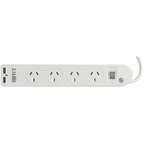 Italplast 4 Outlet Powerboard Master Switch Surge Overload Protection And 2 USB