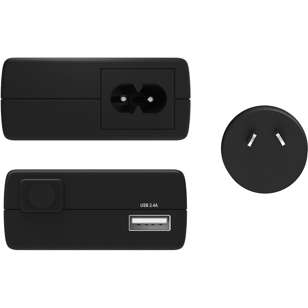 • USB Type-A fast-charging port (max 2.4A).