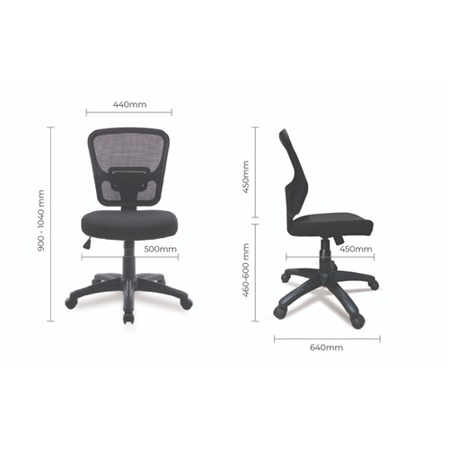 Seat Dimensions: 500W x 450D x 460-600mmH. Back Height: 450mm. Back Width: 440mm.