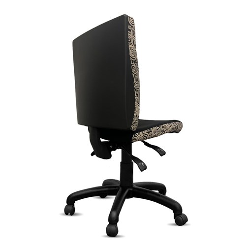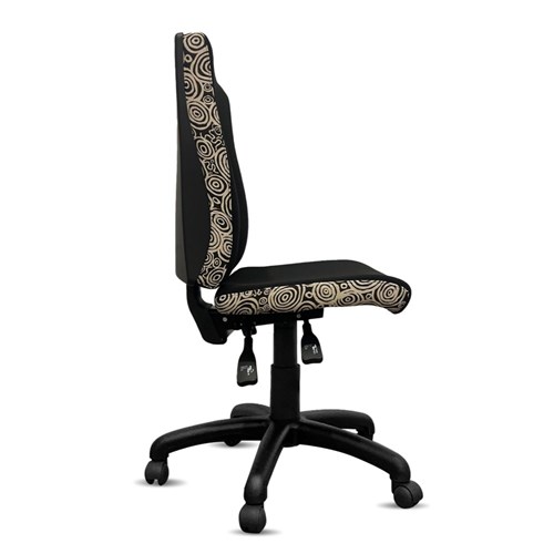 A unique commercial fabrics designed by Nelly Patterson (Indigenous Artist) combined with K2 Black Fabric to upholster the chair.