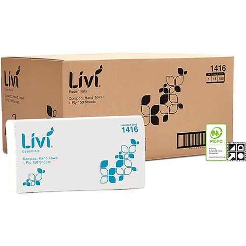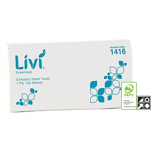 Livi Essentials Hand Towel Compact 1 Ply 150 Sheet 20 x 28.5cm Box Of 16