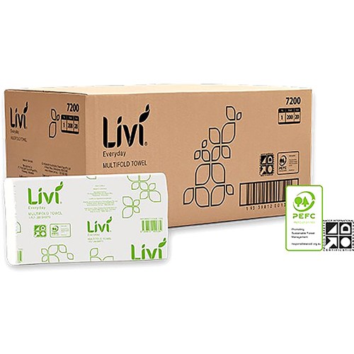 Livi Everyday Hand Towel Multifold 1 Ply 200 Sheets 225x230mm Box Of 20