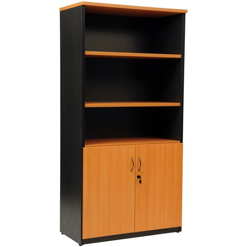 Logan Storage Cupboard 900W x 450D x 1800mmH Beech and Ironstone