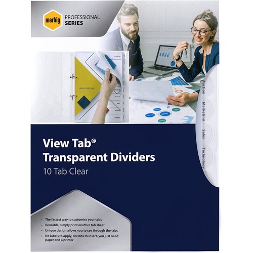 Marbig Professional Series Dividers A4 10 View Tab Extra Wide Transparent Multi