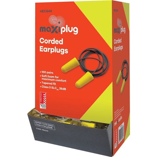 Maxisafe MaxiPlug Ear Plugs Disposable Corded 26dB Yellow And Black Pack Of 100