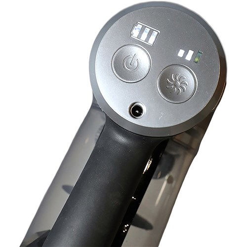 Single click to empty clear acrylic dust canister.