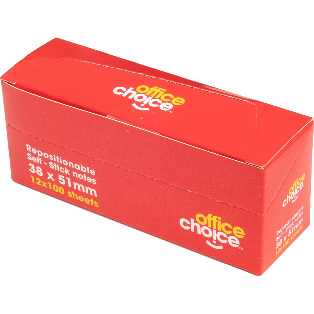 Office Choice Repositionable Sticky Notes 100 sheets Yellow 38 x 51mm Pack of 12