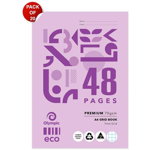 Olympic Eco Exercise Book G748P A4 7mm Grid 48 Pages