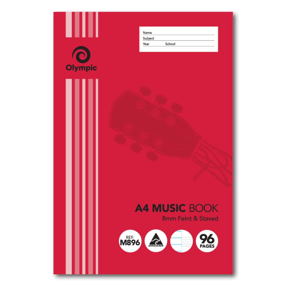 Olympic Music Book M896 A4 8mm Feint & Staved 96 Page