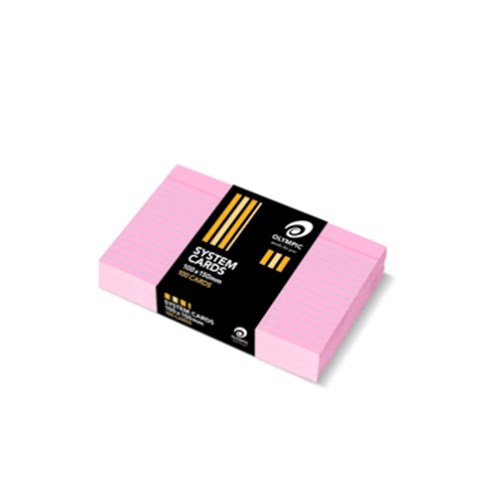 Olympic System Cards 100 x 150mm Ruled Pink Pack Of 100