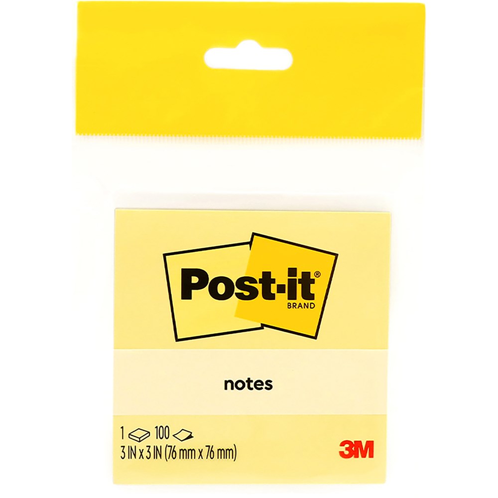 Post-it 654-1CY Notes Original 76x76mm Yellow Pad 100 Sheets