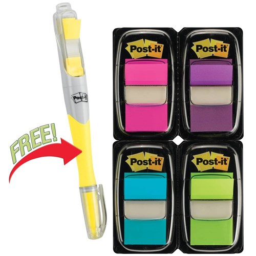 Post-It 680-PPBGVA Flags Value Pack 25x43mm Bright Colours + Highlighter Pack of 200