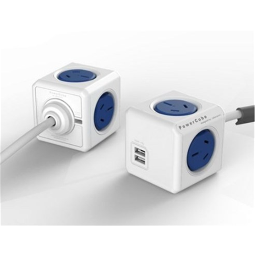 POWERCUBE EXTENDED USB 4 OUTLETS & 2 USB 1.5M LEAD BLUE