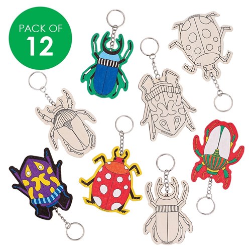 Printed Wooden Keyrings - Beetles - Pack of 12