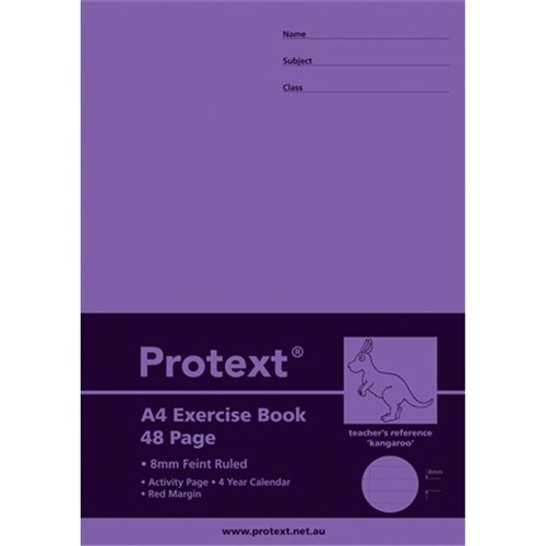 Protext Exercise Book A4 8mm Ruled 70gsm 48 Page Red Margin Kangaroo