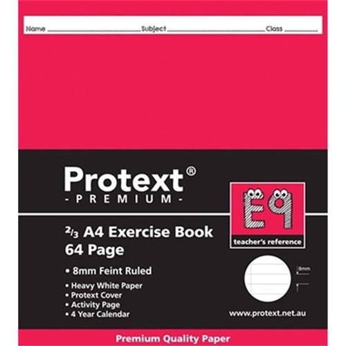 Protext Premium Exercise Book 2/3 A4 64 Page 8mm Feint Ruled Red Margin E9