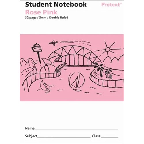 Protext Student Note Book 250 x 175mm Double Ruled 3mm 32 Page Rose Pink