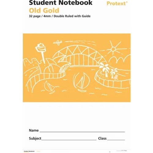 Protext Student Note Book 250 x 175mm Double Ruled 4mm/Guide 32 Page Old Gold