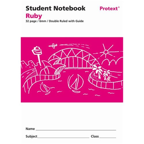 Protext Student Note Book 250 x 175mm Doubled Ruled 6mm With Guide 32 Page Ruby