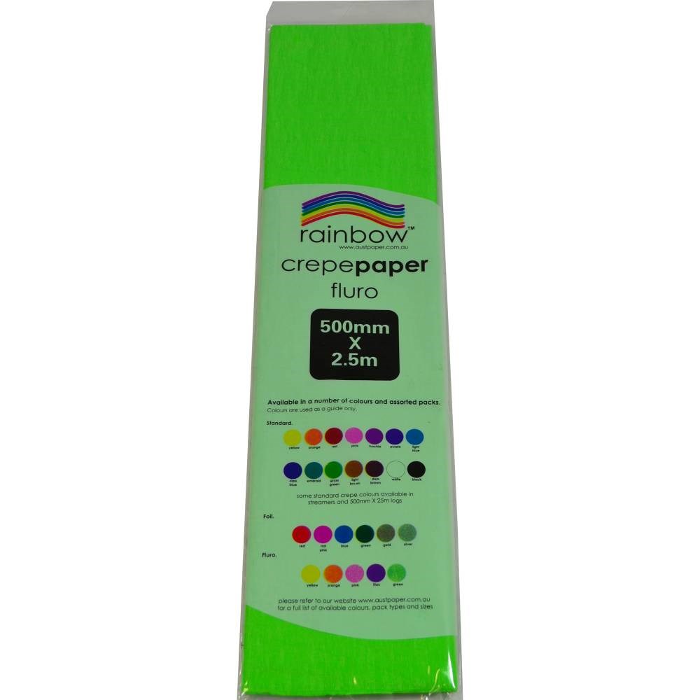 Rainbow Fluro Crepe Paper 500mm x 2.5m Green