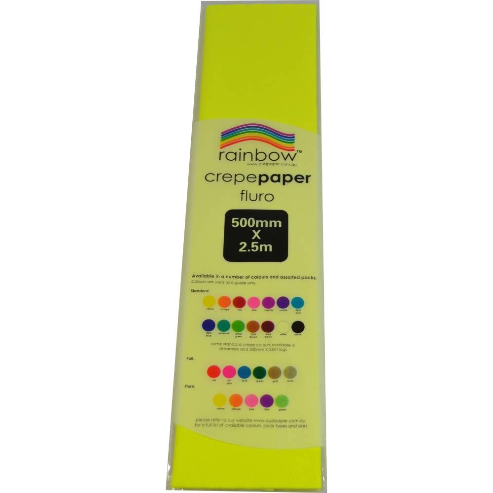 Rainbow Fluro Crepe Paper 500mm x 2.5m Yellow