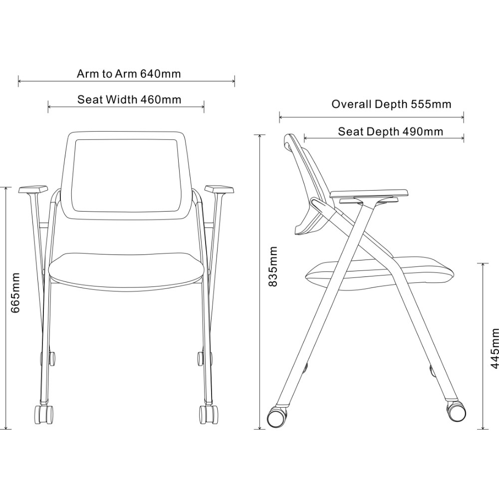 Arm To Arm: 640mm. Floor To Top Of Arm: 665mm. Overall Height: 835mm. Overall Depth: 555mm.