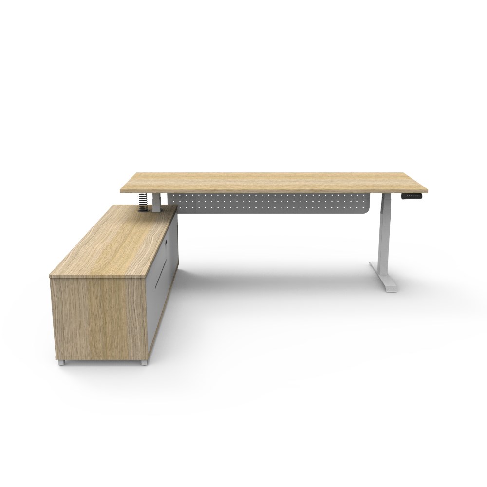 Rapidline Boost+ Executive Desk + LHS Cabinet+Panel 2270W x 1936D x 620-1270mmH Oak/Wht