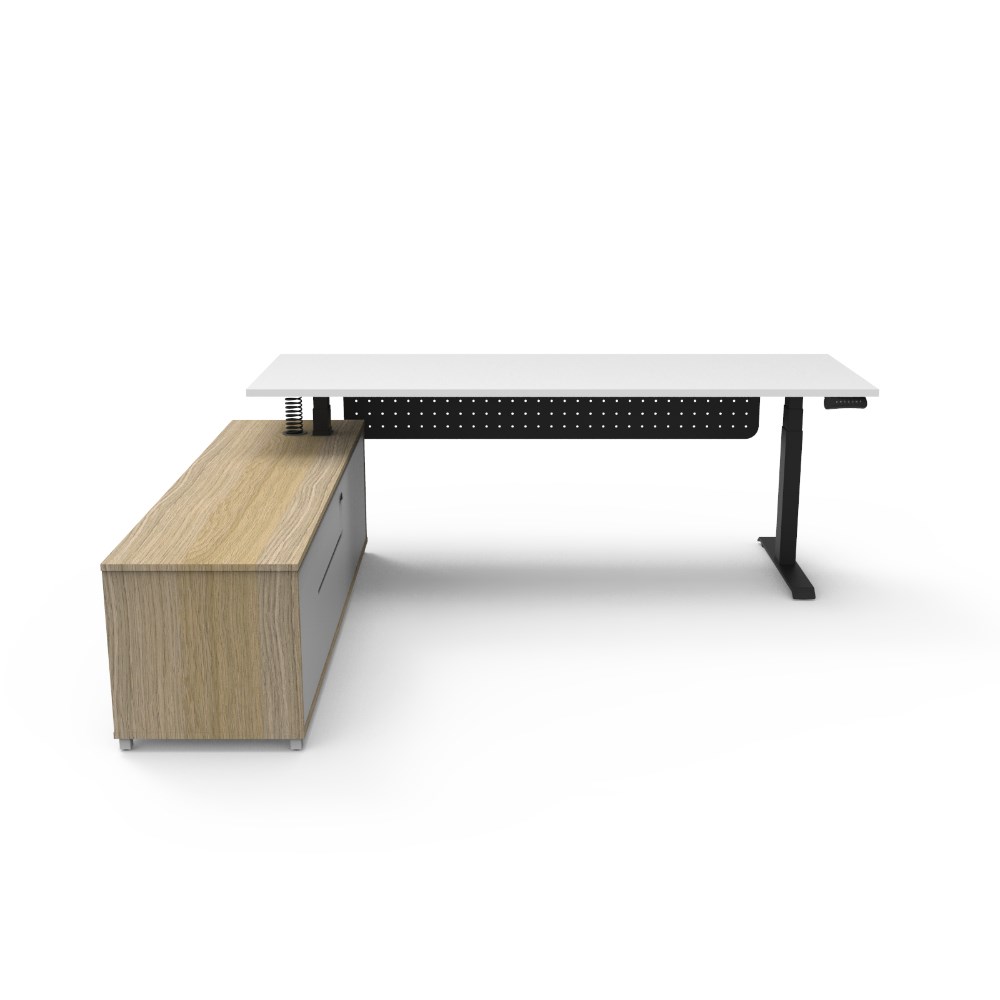 Rapidline Boost+ Executive Desk + LHS Cabinet+Panel 2270W x 1936D x 620-1270mmH Wht/Blk