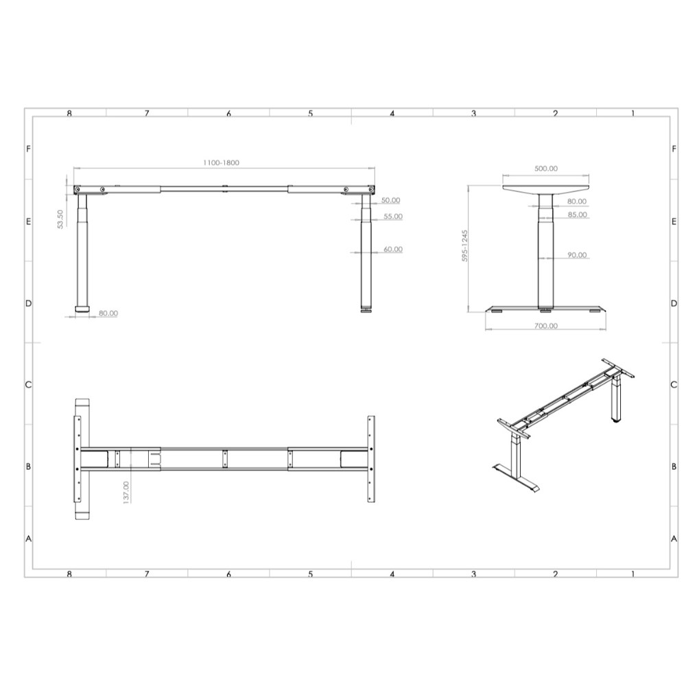 Frame Dimensions: 1100mm-1800W x 700D x 595-1245mmH.