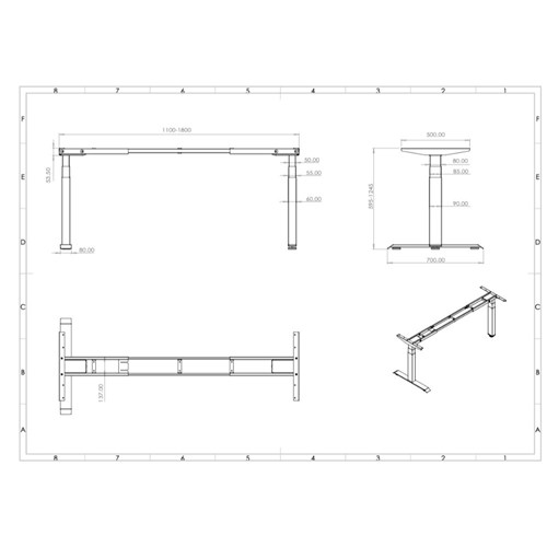 Frame Dimensions: 1100mm-1800W x 700D x 595-1245mmH.