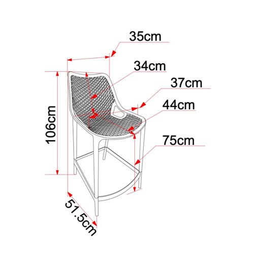 Back Height: 340mm. Seat Height Floor To Seat: 750mm. Overall Height: 1060mm.