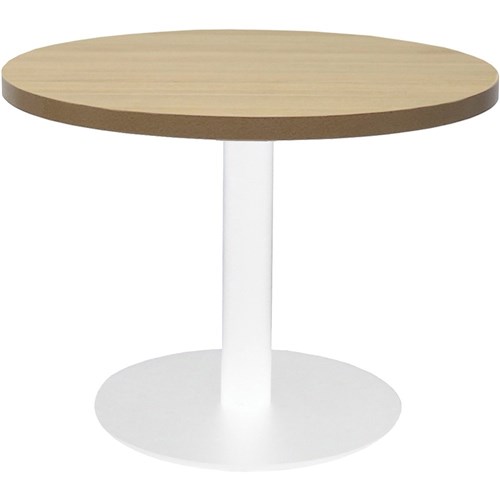 Rapidline Disc Base Coffee Table 600D x 450mmH Oak Top White Base