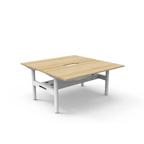 Natural Oak top White Satin frame. Double sided workstation with cable tray.