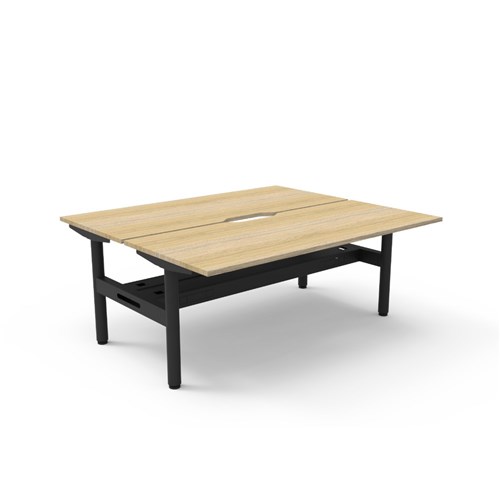 Natural Oak top Black Satin frame. Double sided workstation with cable tray.