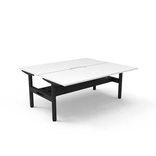 Natural White top Black Satin frame. Double sided workstation with cable tray.