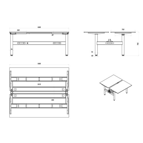 Desk Per User Dimensions: 1800W x 750D x 730mmH. Height With Screen: 1330mm.